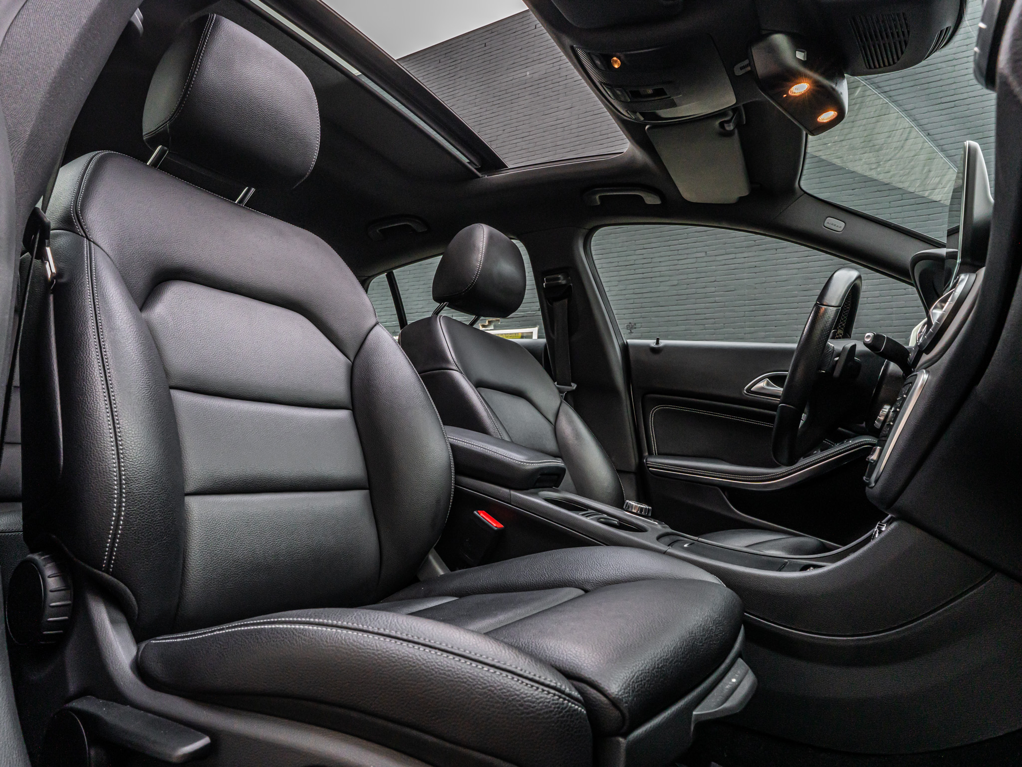 Deze specifieke CLA200 is afkomstig uit 2017 en dus een facelift. Dat houdt in dat de auto op een aantal punten weer opgefrist wordt. Bij de CLA is dat te zien aan de volledig nieuwe voorbumper, andere achterlichten, een frisser multimedia-scherm zonder randen, sportstoelen met uitschuifbare zittingen en een opgefrist stuur.